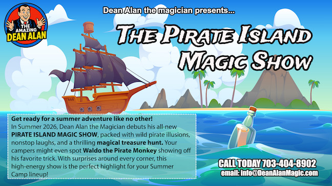The last two weeks in February starts my run of Seuss-tacular Magic Shows all about the books and characters of Dr. Seuss. This show emphasizes reading and shares details from various Seuss stories. You might even learn how a particular character or story was created! This show will run till April 2026. Summer 2026 Set Sail With The Pirate Island Magic Show! Now booking dates!!!